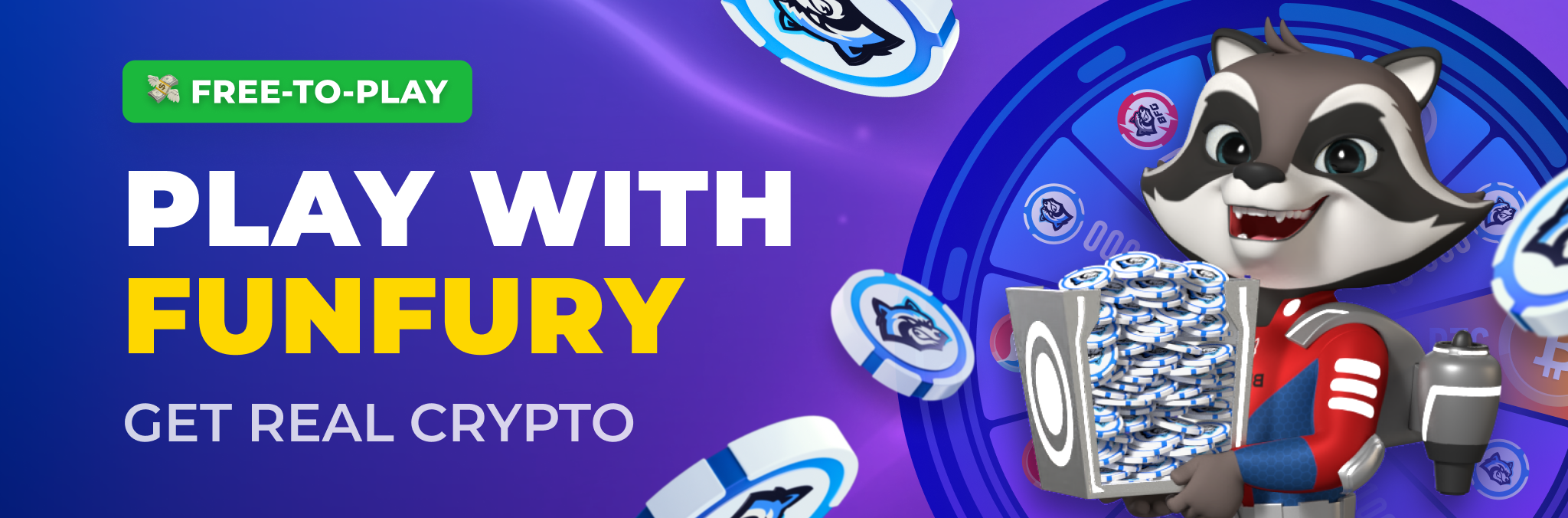 You can get FUNFURY tokens and real crypto up to 1 BTC. Special Fury Wheel rewards users of Ranks 2-16 with real crypto.
