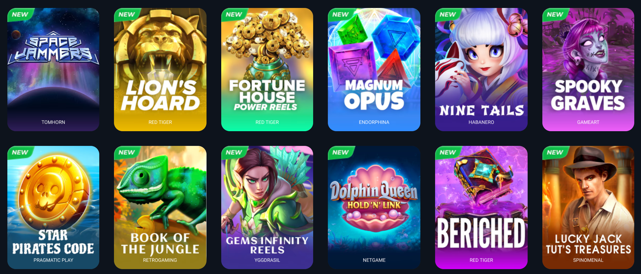 There are more than 8 000 Slots on the platform today! Instant wins, mega multipliers, bonus rounds, and other features make online one-armed bandits even more exciting. The stellar list of providers is one more thing we can boast about. Pragmatic Play, Spinomenal, NetEnt, RedTiger, Playson, Booongo, Endorphina, Habanero, Tomhorn, Wazdan, Yggdrasil, and more among them.