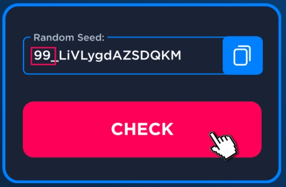Click "Check". Then in the opened window paste Random Seed you've copied. The issued hash below must match that fixed on BetFury.